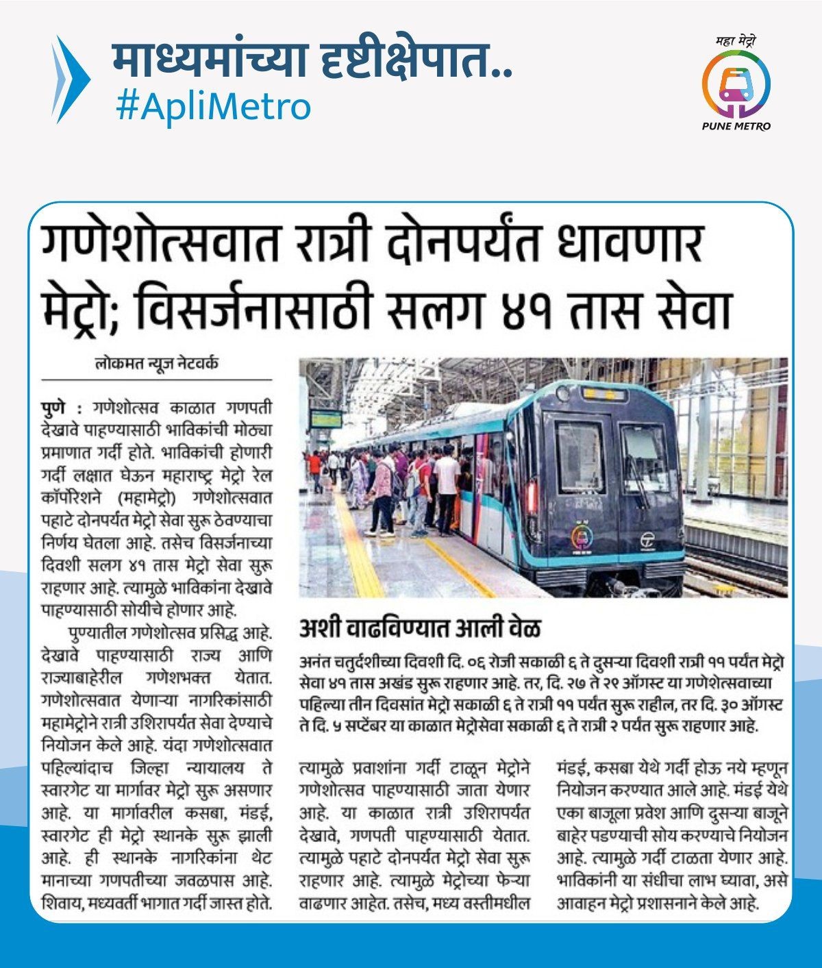 During Ganesh Festival many devotees come to see decoration in large numbers, considering that fact Maharashtra Metro Railway corporation has decided to keep metro running until 2am in the morning. Also Maharashtra Metro Railway corporation has decided to keep metro running for 41 Hours on the day of Visarjan i.e. Anant Chaturti. I believe these are some great and thoughtful steps taken Maharashtra Metro Railway corporation to ensure smooth Ganesh Festival Celebration.